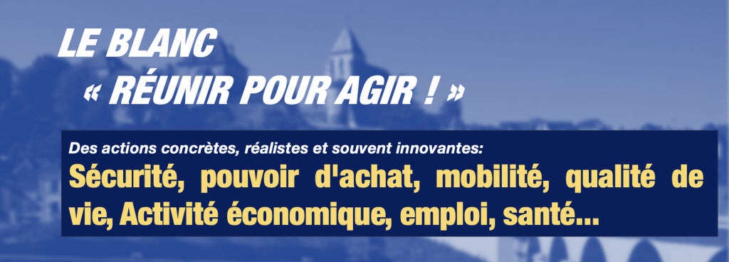 Comme vous l’avez peut-être lu dans la presse, c’est ce triste constat qui m’a décidé à vous soumettre ma candidature à la mairie du Blanc. Dans sa situation, notre ville a besoin de compétence, de détermination et d’autorité.