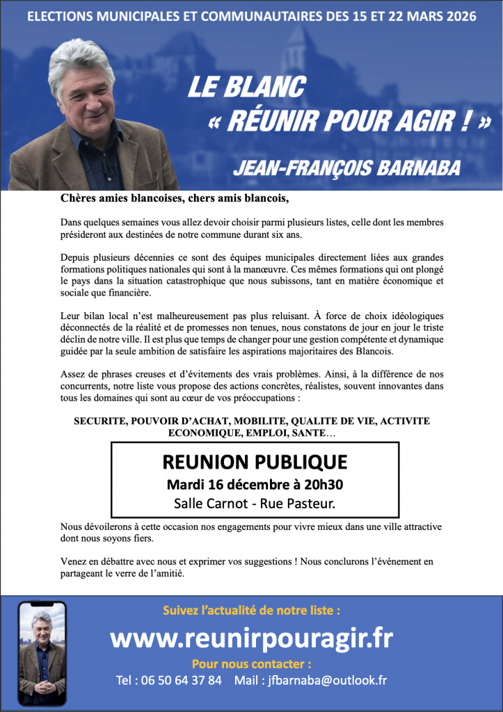 Liste LE BLANC « RÉUNIR POUR AGIR ! » avec JEAN-FRANÇOIS BARNABA
